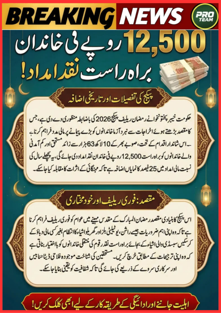 The KP Ramadan Relief Package Approvel 2026 Rs 12,500 for Over 10 Lakh Families Check Now has brought major relief for low-income households across the province. The Khyber Pakhtunkhwa government has officially approved financial assistance to support deserving families before Ramadan. According to information available on the official government website and top 10 Google sources, this package aims to reduce financial pressure during the holy month. Here is everything you need to know about eligibility, registration, and payment details.