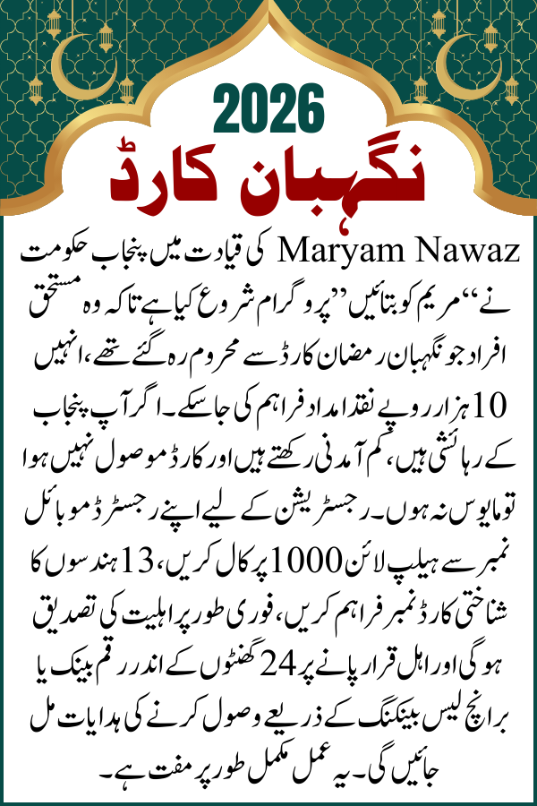 February 21, 2026: If you are a deserving resident of Punjab but did not receive the Nigehban Ramzan Card, do not lose hope. The Punjab government, under the leadership of CM Maryam Nawaz Sharif, has launched the “Maryam Ko Batain” program specifically to help people like you. If you were missed during the survey or your card was not delivered, you can now get Rs. 10,000 in cash assistance within 24 hours by simply dialing Helpline 1000. The government has assured that no eligible family will be left behind, and complaints are being resolved immediately .